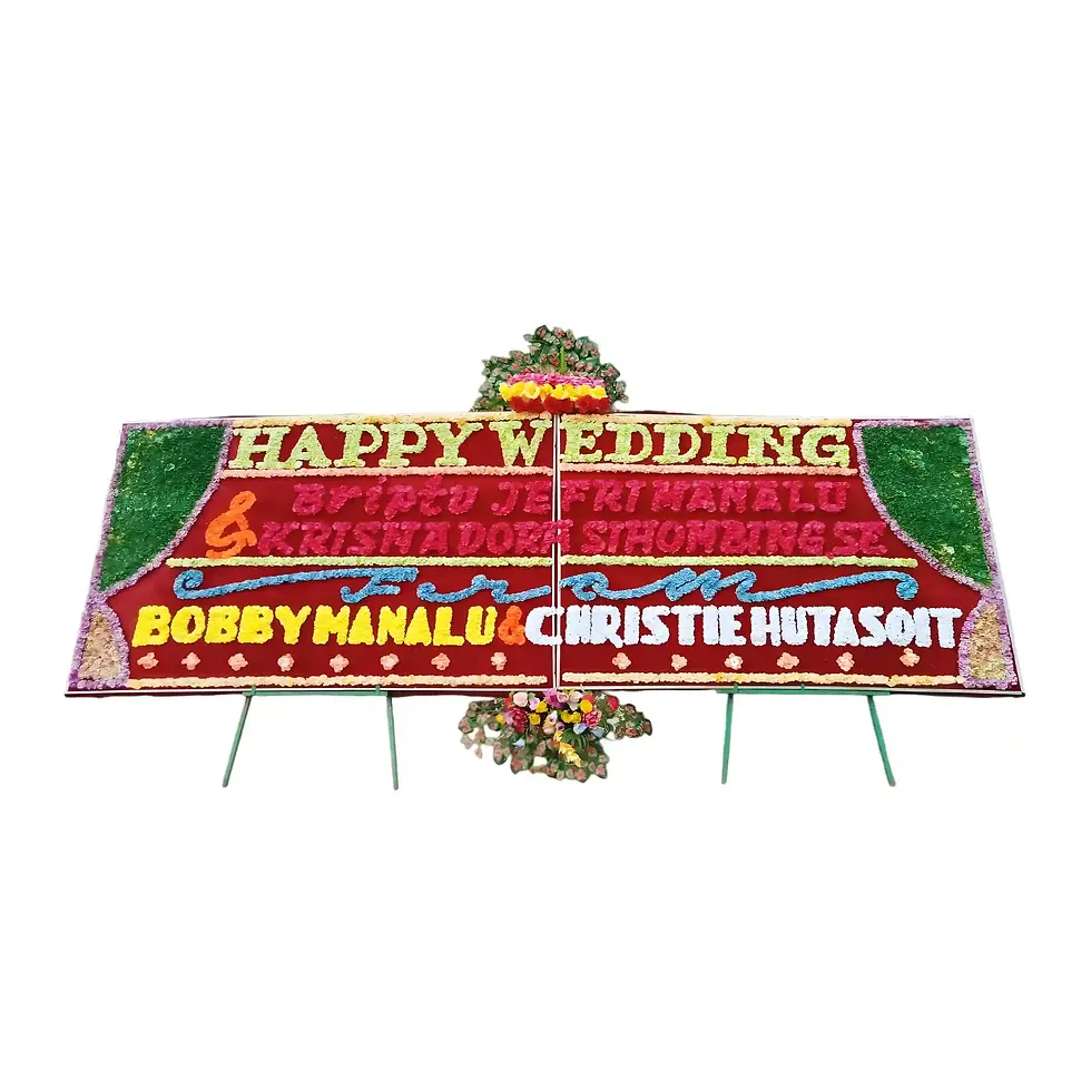Toko bunga Kisaran menjual karangan bunga papan ucapan pernikahan / wedding, karangan bunga papan duka cita, karangan bunga papan ucapan selamat / congratulations / opening toko, karangan bunga papan ucapan anniversary dll
