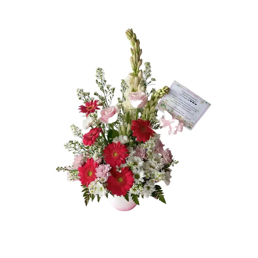 Selain karangan bunga papan, toko bunga murah kami juga menjual rangkaian bunga segar dan artificial seperti rangkaian bunga meja atau vas, rangkaian bunga standing