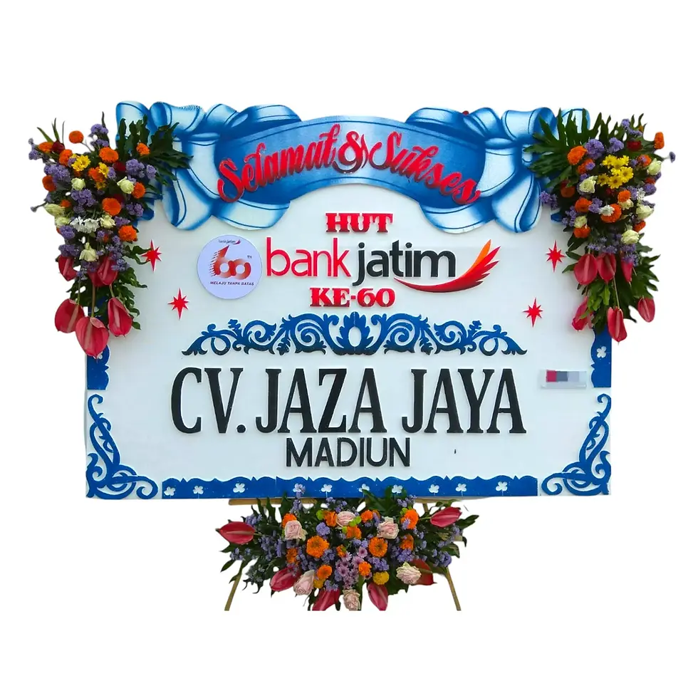 Kami jual bunga papan dengan desain yang bagus dan rapi serta menggunakan bunga artificial. Setiap karangan bunga papan akan di rangkai oleh perangkai professional kami, sehingga setiap detail bunga papan akan di perhatikan dengan baik